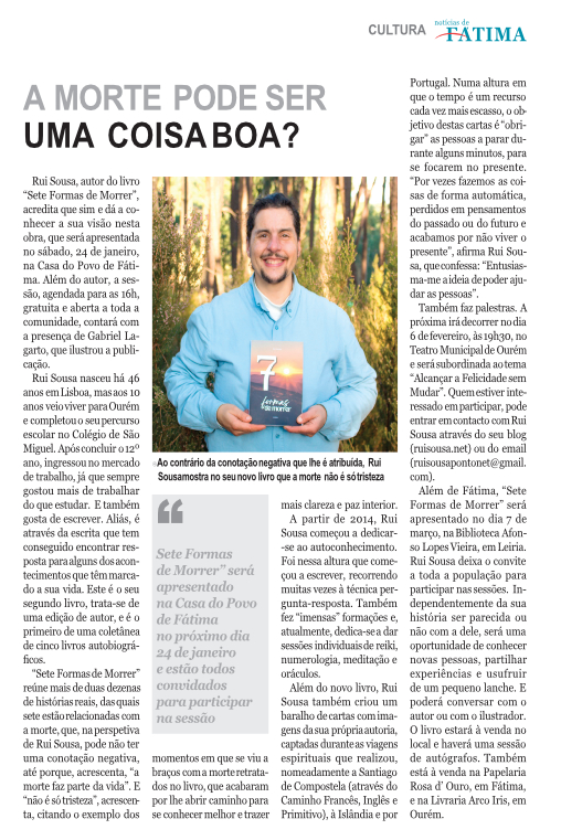 Antes da primeira apresentação do livro em Fátima, a jornalista Fernanda Frazão do jornal Notícias de Fátima escreveu este artigo sobre o livro. Edição de 9 de Janeiro de 2026.